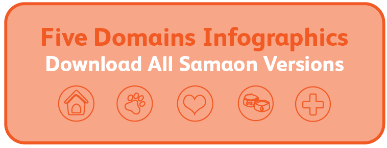 The Five Domains are five groups of things animal guardians need to consider when thinking about good animal welfare. The Five Domains recognise an animals’ emotional needs are equally as important as their physical needs.